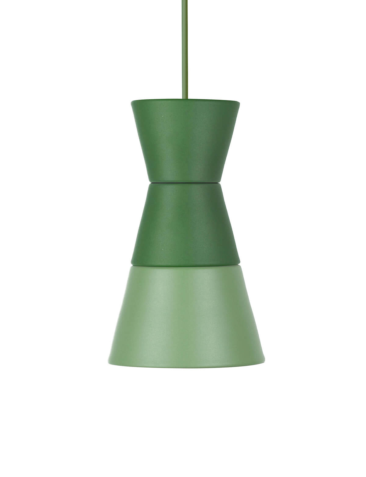 Durch das einfache Zusammenfügen der verschiedenen Schirm-Elemente, lassen sich verschiedenste Beleuchtungskörper herstellen. Auf Anfrage sind auch andere Kombinationen von Farben und Formen erhältlich.
