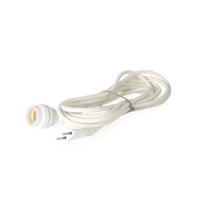 Mit dem IP65 Outdoor Lampenpendel weiss 5m einzeln kannst du auch den letzten Baum, die letzte Ecke oder das Ende eines Ganges abseits vom geschehen punktuell ausleuchten. Durch den weissen Pendel kannst du dein Gesamtbild im Aussen- oder Innenbereich perfekt abrunden. Am einten Ende ist eine E27 Fassung und am anderen ein herkömmlicher zwei poliger Stecker, so lässt sich der Pendel sobald das passende E27-Leuchtmittel gefunden wurde direkt einsetzen.