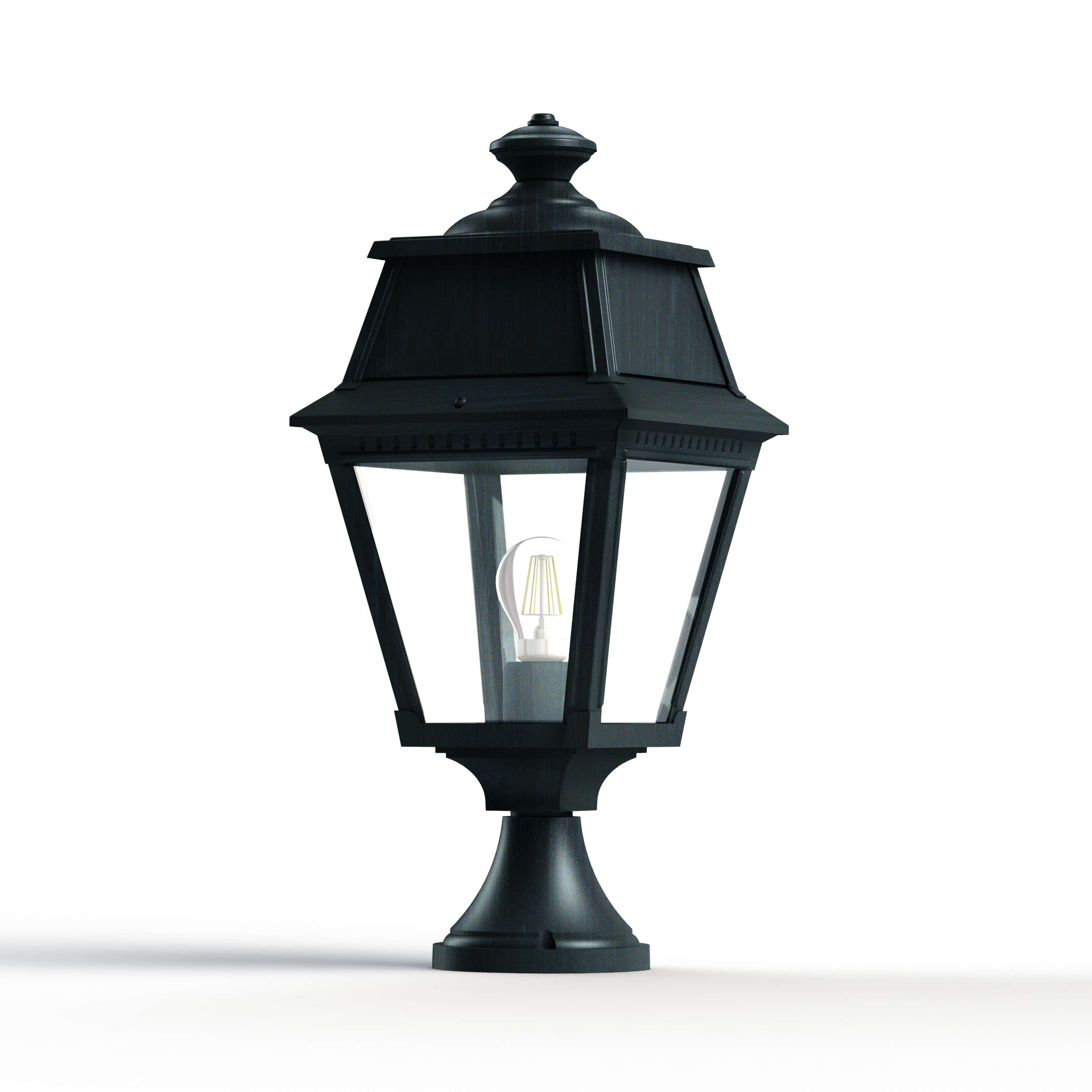 Die kleine Pollerleuchte Avenue 2 M5 aus dem Hause Roger Pradier® gehört klar zur klassischen Produktlinie. Auf einem Betonsockel oder einer Brüstung beleuchtet dieses 55cm hohe klassische Stück den Weg für späte Gäste. Wahlweise mit E27 Leuchtmittel oder LED Modul ist das Aussehen der kleinen Pollerleuchte zwar klassich, die Verarbeitung und die Technik jedoch zeitgemäss. Mit IP44 Schutz ist auch diese Leuchte gegen Regenwetter geschützt und profitiert von 25 Jahre Antikorrisionsgarantie.
