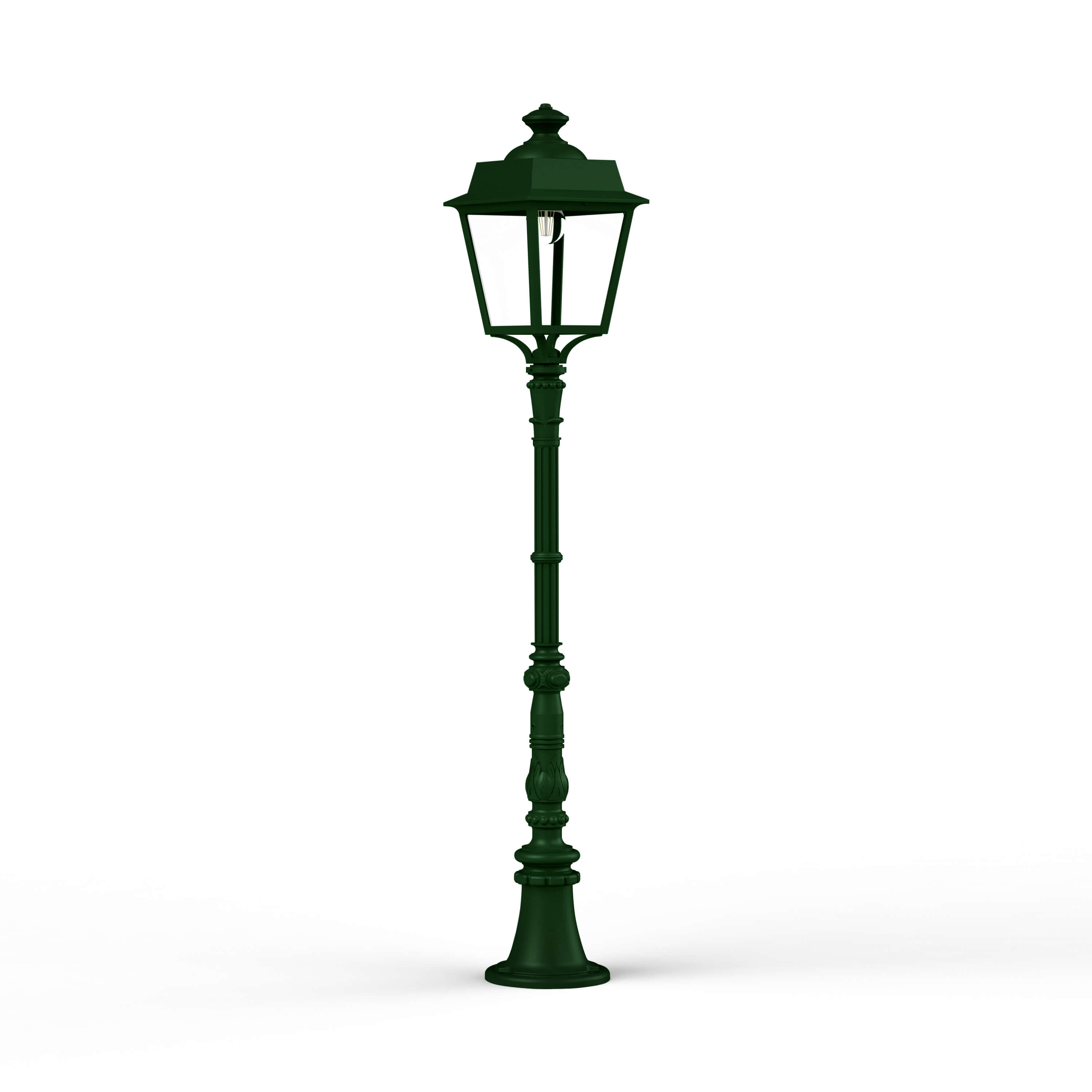 Aussenleuchte Place des Vosges 1 Evolution M11 von Roger Pradier© mit einer Höhe von 130.7cm und einer Breite von 22cm. Produziert in Frankreich bei höchster Qualität, welche mit einer Antikorrisionsgarantie von 25 Jahren zugesichert wird. Die Leuchte ist mit einem IP65 Schutz versehen und so gegen die meisten Einwirkungen aus dem Alltag abgesichert. Wähle die passende Konfiguration (Glas, Farbe, Leuchtmittel etc.) um deinen Vorstellungen gerecht zu werden.