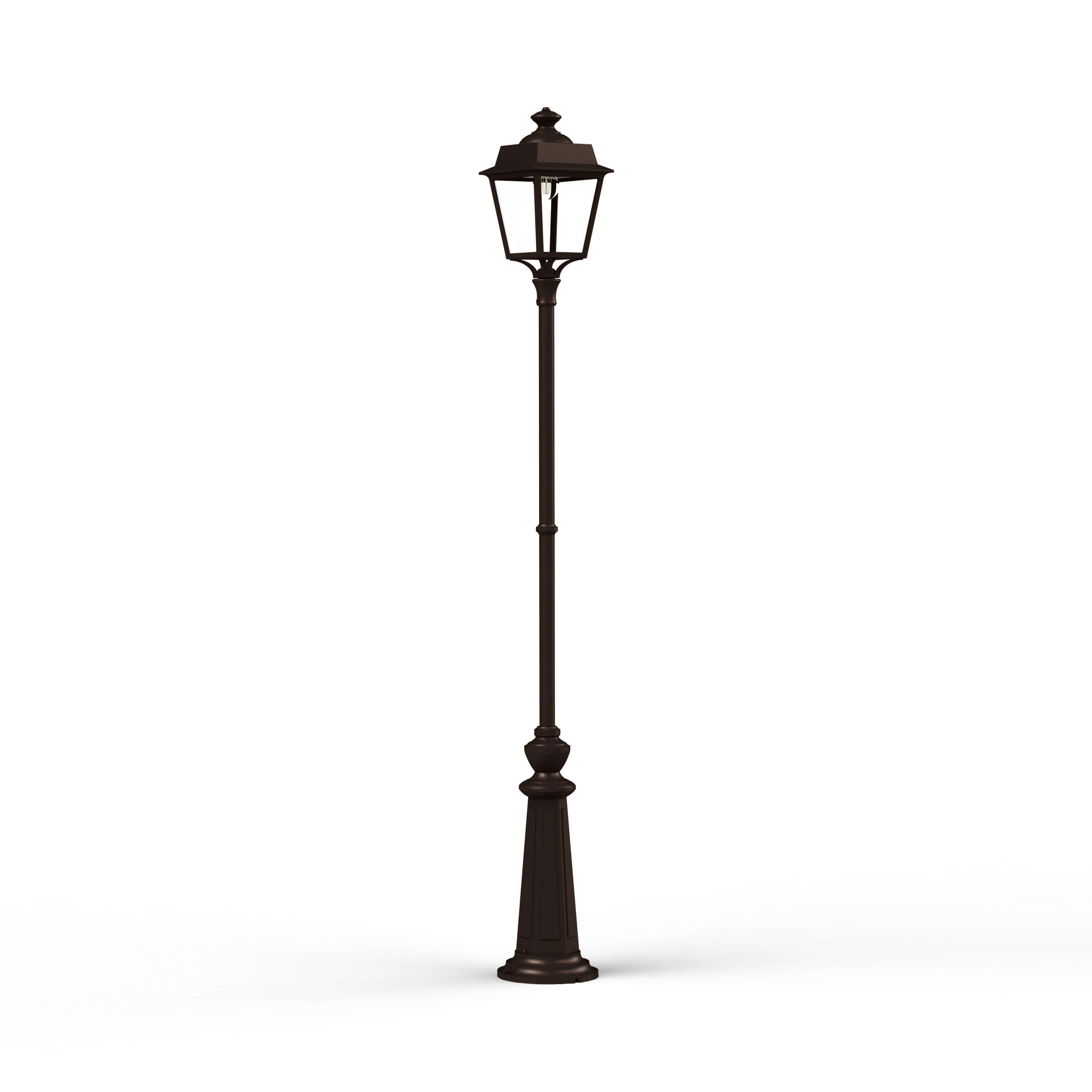 Aussenleuchte Place des Vosges 1 Evolution M12 von Roger Pradier© mit einer Höhe von 197.8cm und einer Breite von 22cm. Produziert in Frankreich bei höchster Qualität, welche mit einer Antikorrisionsgarantie von 25 Jahren zugesichert wird. Die Leuchte ist mit einem IP65 Schutz versehen und so gegen die meisten Einwirkungen aus dem Alltag abgesichert. Wähle die passende Konfiguration (Glas, Farbe, Leuchtmittel etc.) um deinen Vorstellungen gerecht zu werden.