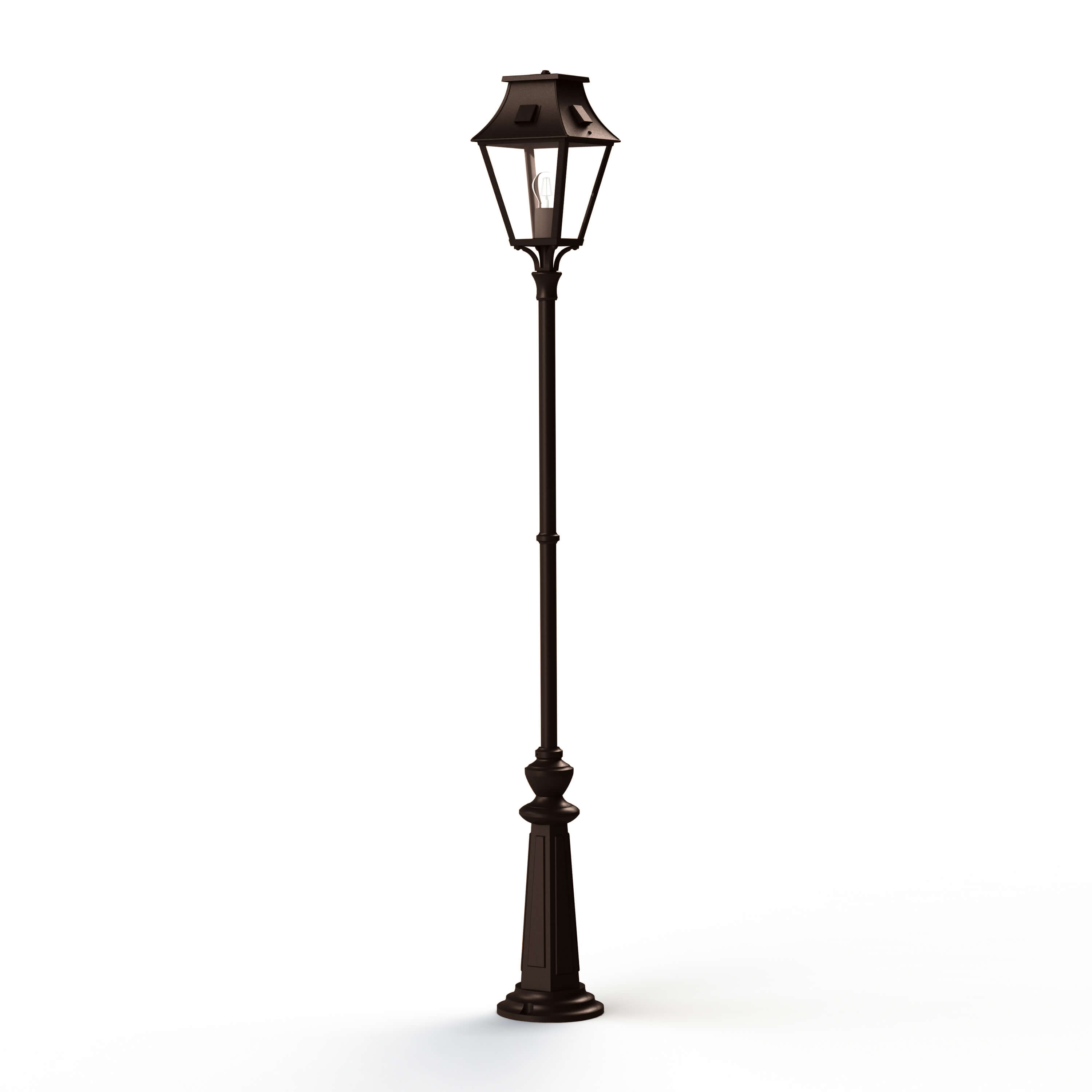 Aussenleuchte Vieille France M3 von Roger Pradier© mit einer Höhe von 201.8cm und einer Breite von 23.5cm. Produziert in Frankreich bei höchster Qualität, welche mit einer Antikorrisionsgarantie von 25 Jahren zugesichert wird. Die Leuchte ist mit einem IP44 Schutz versehen und so gegen die meisten Einwirkungen aus dem Alltag abgesichert. Wähle die passende Konfiguration (Glas, Farbe, Leuchtmittel etc.) um deinen Vorstellungen gerecht zu werden.