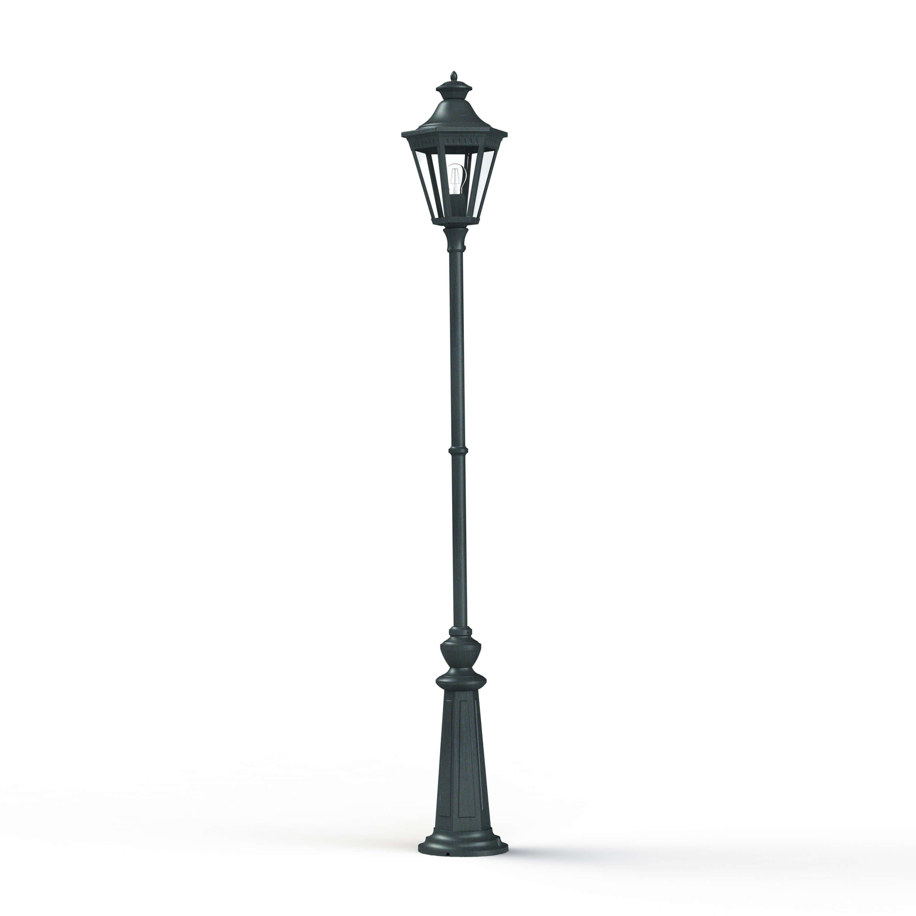 Aussenleuchte Victoria M12 von Roger Pradier© mit einer Höhe von 199.6cm und einer Breite von 27.5cm. Produziert in Frankreich bei höchster Qualität, welche mit einer Antikorrisionsgarantie von 25 Jahren zugesichert wird. Die Leuchte ist mit einem IP44 Schutz versehen und so gegen die meisten Einwirkungen aus dem Alltag abgesichert. Wähle die passende Konfiguration (Glas, Farbe, Leuchtmittel etc.) um deinen Vorstellungen gerecht zu werden.