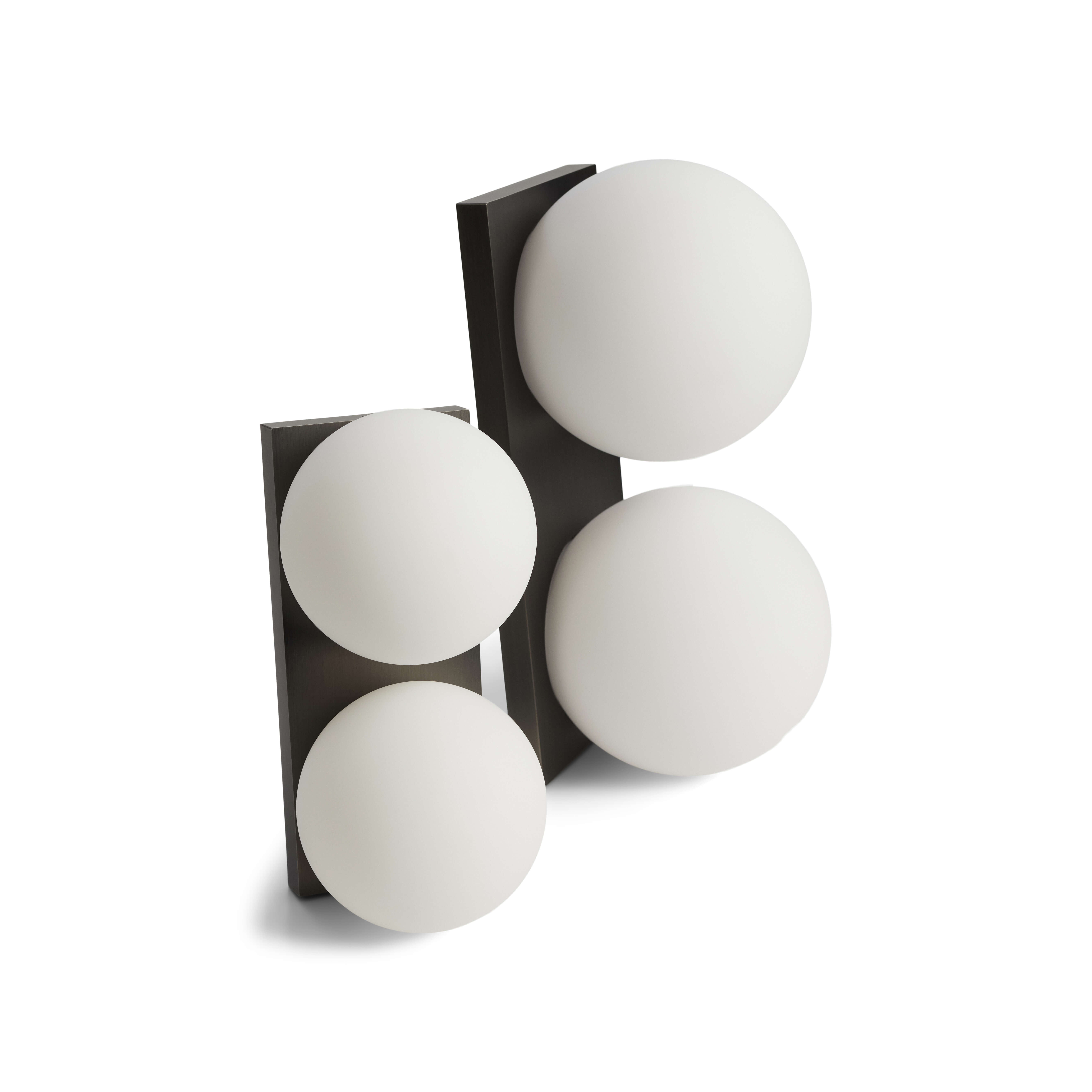Über die Palla-Serie – Elegante Glaslampen in verschiedenen Ausführungen Palla ist eine bezaubernde Serie kugelförmiger Lampen aus Opalglas, die in verschiedenen Größen und Designs erhältlich sind. Die Serie verleiht Ihrem Zuhause einen raffinierten und exklusiven Look und bleibt dabei zeitlos und schlicht. Daher fügt sie sich mühelos in bestehende Innenräume ein. Palla Mini C290 – Eine kleine Doppellampe aus Glas mit vielfältigen Möglichkeiten Die kleinste Doppellampe aus Glas der Serie ist die Palla Mini C290. Diese Lampe kann sowohl als Decken- als auch als Wandleuchte verwendet werden und bietet somit vielfältige Einsatzmöglichkeiten in Ihrem Zuhause. Diese kleine Doppellampe aus Glas eignet sich gut als Deckenleuchte im Eingangsbereich, wo sie für ein angenehmes und einladendes Licht im ersten Raum Ihres Zuhauses sorgt. Sie macht sich auch elegant als Wandleuchte in der gemütlichen Ecke Ihres Wohnzimmers oder kann zur zusätzlichen Beleuchtung in einem geräumigen Badezimmer verwendet werden. Palla C2135 – Eine große Doppellampe aus Glas mit vielen Möglichkeiten Palla C2135 ist die größte Doppellampe aus Glas der Serie und verfügt über zwei Glaskugeln mit einem Durchmesser von jeweils 13,5 cm. Sie kann sowohl als Wandleuchte als auch als Deckenleuchte verwendet werden und bietet zahlreiche Anwendungsmöglichkeiten. Design und Funktionalität Palla ist eine bis ins kleinste Detail sorgfältig gestaltete Serie. Mit ihrem mattierten Glasschirm sorgt sie für ein angenehm diffuses Licht, das Blendungen vermeidet und eine behagliche Atmosphäre schafft. Darüber hinaus sind die Lampen so konstruiert, dass sie keine Schatten werfen und das Licht sich elegant über die gesamte Glasoberfläche verteilt. Wie die anderen Lampen der Serie ist auch Palla C2135 dimmbar und verfügt über eine DTW-Funktion. So können Sie sowohl die Helligkeit als auch die Farbtemperatur an Ihre Aktivitäten, Bedürfnisse und Ihre Stimmung anpassen. Die beiden kugelförmigen Glaslampen sind auf einem Aluminiumsockel montiert, der einen eleganten Kontrast zum ruhigen Glas bildet. Der Sockel ist in Titan oder Messing erhältlich, wobei jede Ausführung einen einzigartigen Ausdruck bietet.