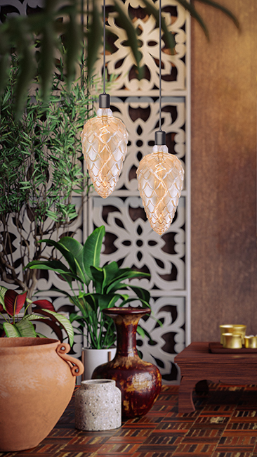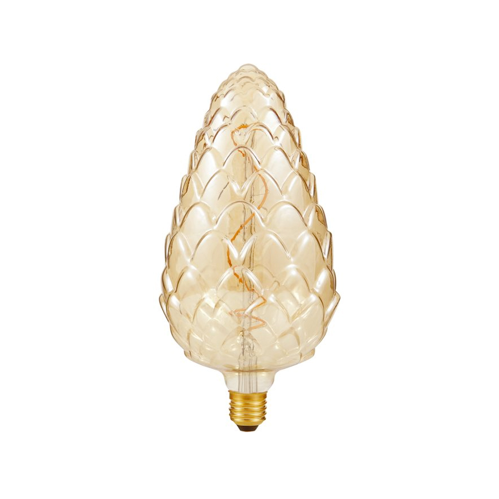 Das LED-Leuchtmittel "Pine Gold" begeistert mit seiner aussergewöhnlichen Form, die an einen Tannenzapfen erinnert. Die strukturierte Oberfläche im goldfarbenen Glas erzeugt faszinierende Lichtspiele und bringt das warmweisse Spiral-Filament eindrucksvoll zur Geltung. Ein Highlight für Interior-Konzepte mit Persönlichkeit.
