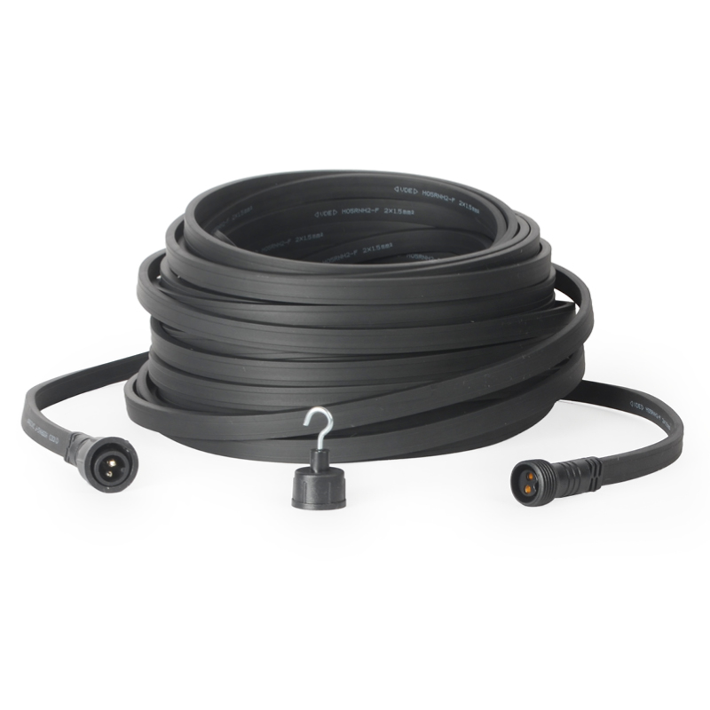 1 x Illu-Flachkabel 20m mit umspritztem männlichem und weiblichem Schraubstecker