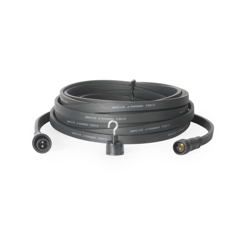 Durch die flache Bauform lässt sich das Kabel unauffällig, platzsparend und ordentlich verlegen, zum Beispiel entlang von Kanten, unter Abdeckungen oder in engen Führungspunkten. Der Leiterquerschnitt von 2×1,5 mm² sorgt für eine stabile Stromversorgung über den Leiterkabeln im Inneren des Kabels. Das Kabel ist kompatibel mit E27-Illu-Fassungen sowie gängigem Illu-Montagezubehör wie Montagehilfen, Verbindungselementen und Verbindungskabeln.