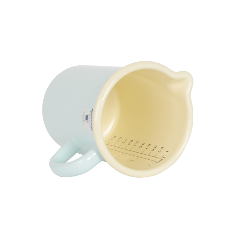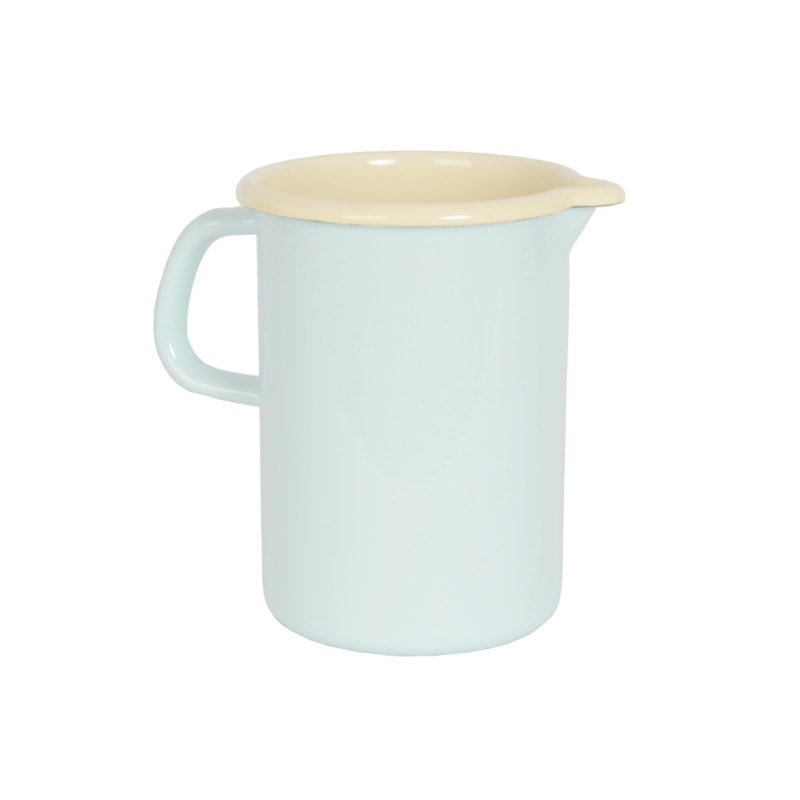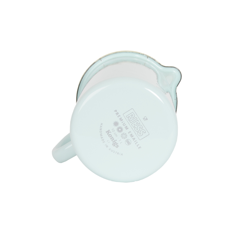 Unser farbiger Emaillekrug mit passendem Emaillegriff vereint funktionales Design mit zeitloser Ästhetik. Die hohe, zylindrische Form mit grossem Ausguss wirkt elegant – und ist zugleich praktisch: Der 1-Liter-Krug passt ideal in das Tür- oder Flaschenfach gängiger Kühlschränke. Der Krug ist Handmade in Austria von der Firma Riess.