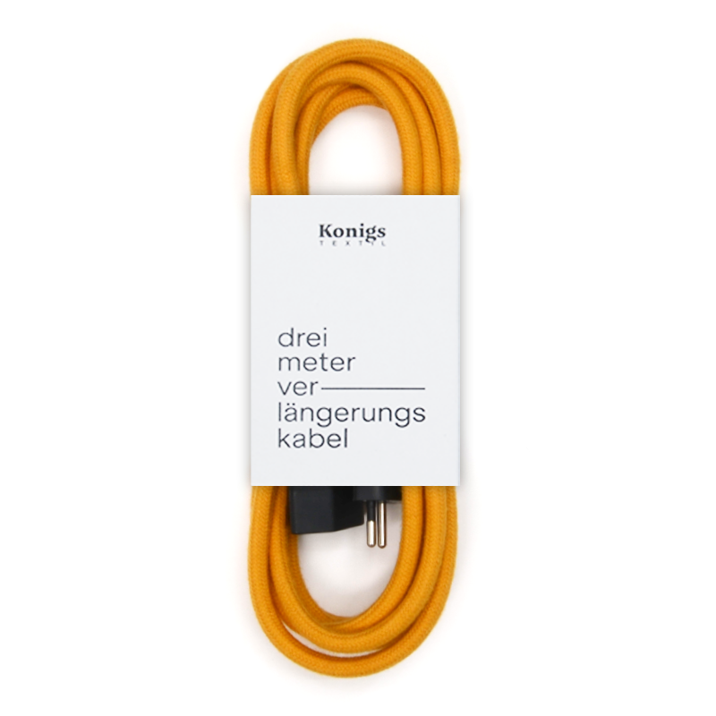 Dieses senfgelbe Verlängerungskabel ist ein Muss für alle Fans der 70er Jahre. Besonders harmonisch wirkt es in Kombination mit Olivgrün oder Grau. Mit ihm werden auch die kleinsten Details deiner Party zum Hingucker und bringen frischen Wind in deine Wohnräume. Das Textilkabel wird in Italien hergestellt, die Stecker werden in Deutschland umspritzt. Jeweils mit 3-poligem Stecker T12 / T13 3x1mm².